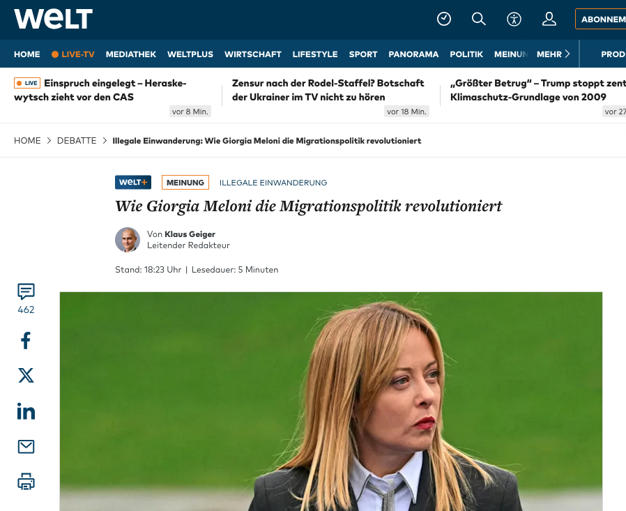 Il quotidiano Die Welt ha affidato al suo sito un commento che parte dal decreto migranti approvato dal Cdm per leggere le politiche del premier